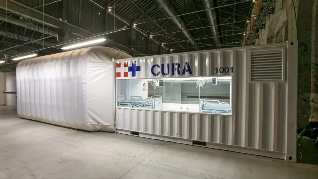 During the pandemic, healthcare organizations and governments transformed shipping containers into ICUs and critical-care units to support overburdened hospital systems — and the trend has continued. Designed by teams of engineers, designers, and medical professionals, they can be built quickly and offer all the safety and necessary equipment of a traditional isolation ward. And thanks to their modular design, they can be placed in parking lots or open spaces, helping to bring care to communities without easy access to a traditional care facility. For example, this modified shipping container has been installed at a temporary hospital built within the Officine Grandi Riparazioni complex in central Turin. Designed by Carlo Ratti Associati and named Connected Units for Respiratory Ailments (CURA).