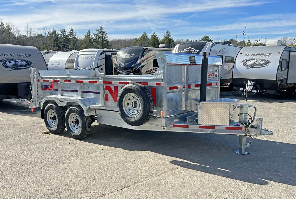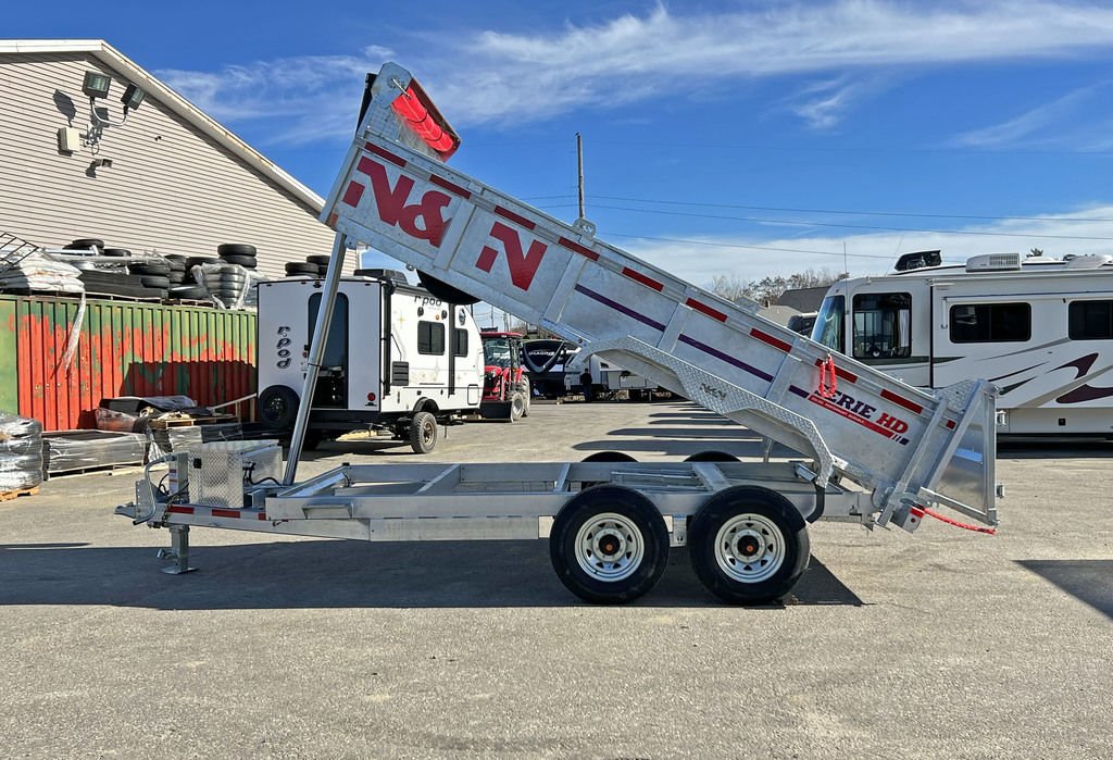 2024 N&N Trailers 7×14 14K Galvanized Hydraulic Dump Trailer w/Ramps, 2-Way Spreader Gate, Tarp Kit.